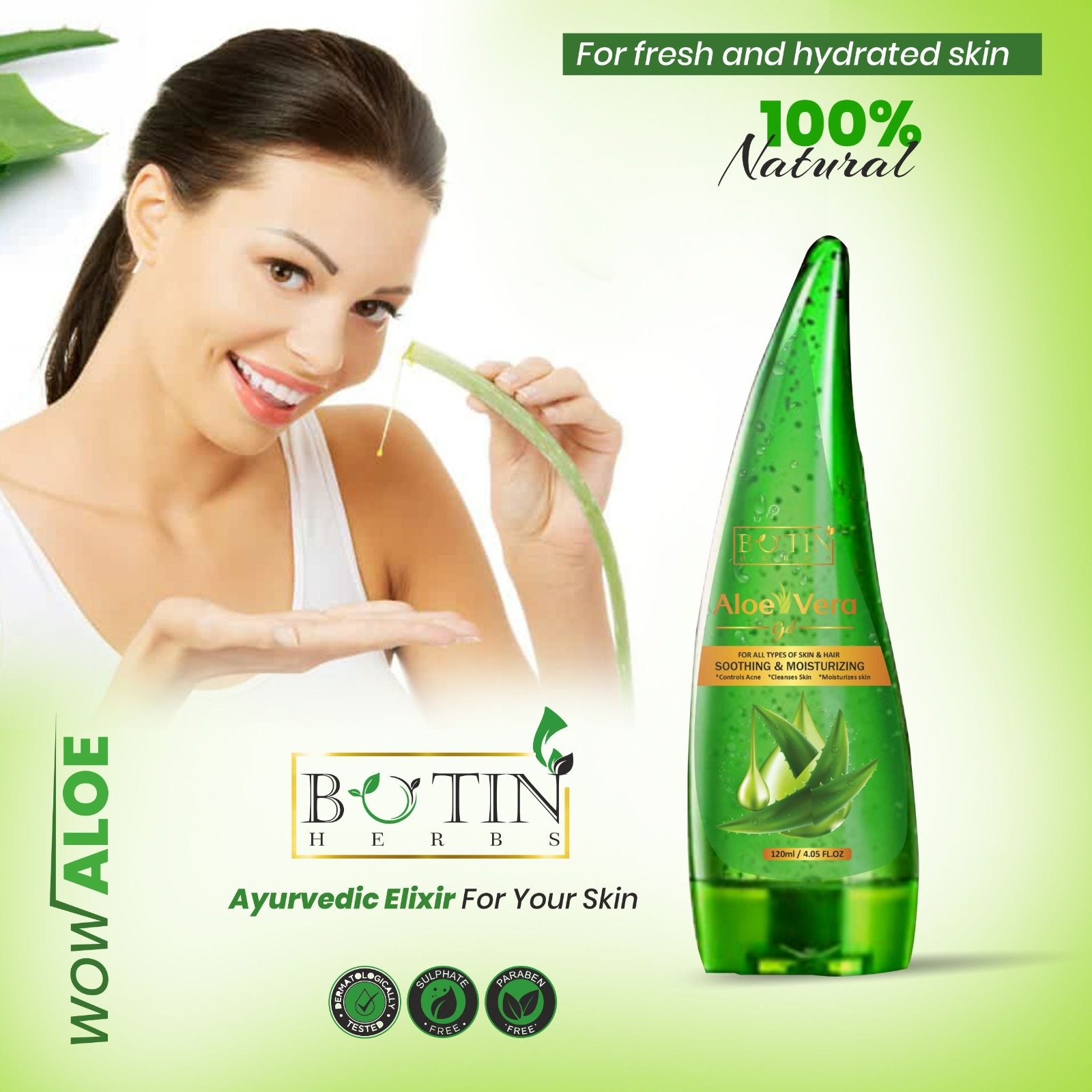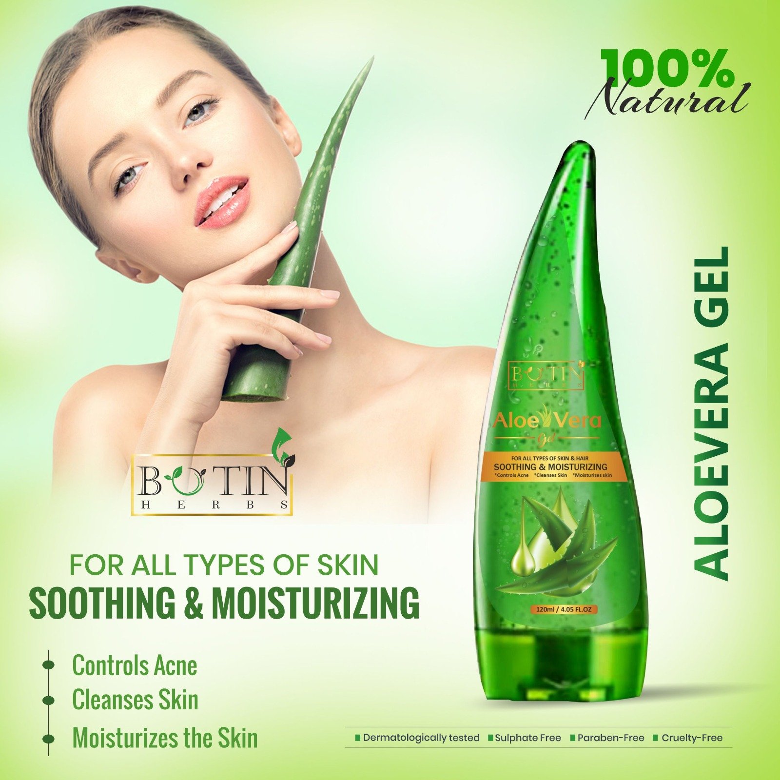 Botinherbs Aloevera Gel is 99% Pure Aloevera. It is dermatologically tested, Suphate Free, Paraben Free and Cruelty Free.