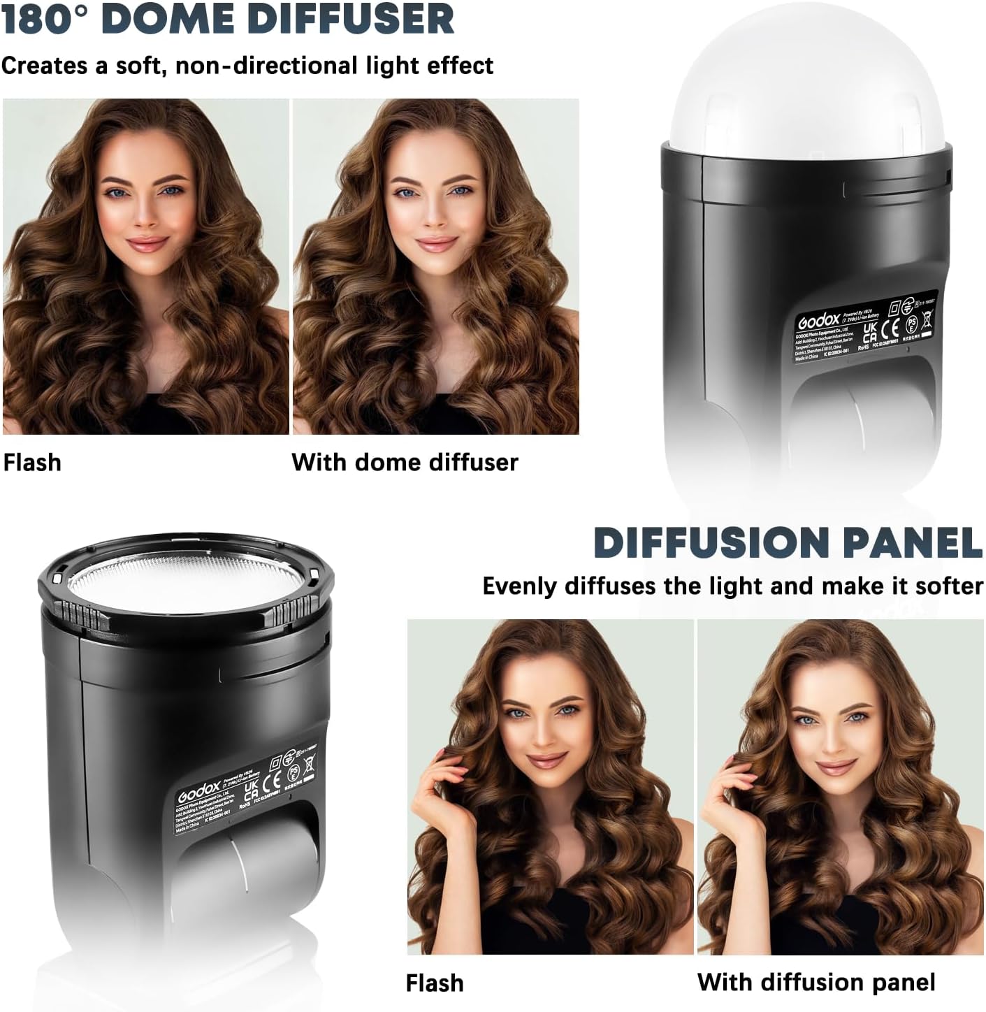 | Compatible Devices | Godox V1, Godox V1 Pro, Godox V100, Godox AD100, Godox AD100Pro, Godox AD200, Godox AD200Pro, Neewer Z1, Neewer Z2, Square Head Flashes with GODOX S-R1 adapter ring |