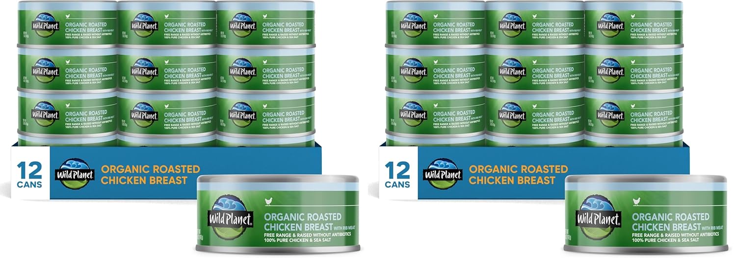 Wild Planet Organic Roasted Chicken Breast With Rib Meat, Skinless and Boneless, Sea Salt, Free Range, Non-GMO, Gluten Free, Keto and Paleo, 5 Ounce (Pack of 12), Packaging May Vary