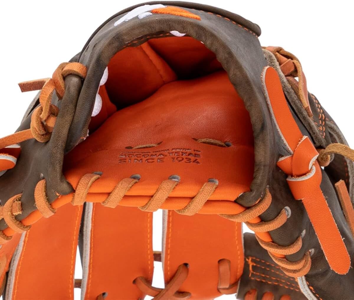 Nokona Hunting Season 12.75" Baseball Glove: HSEP1275H Dominate the outfield with the Nokona Hunting Season 12.75" Glove! Designed for elite defenders, this glove delivers premium craftsmanship, durability, and control. Glove Benefits The Nokona Hunting Season 12.75" Baseball Glove is built for outfielders who demand superior reach, pocket stability, and long-lasting performance. With its 12.75-inch length, this glove provides the extended reach needed to track down deep fly balls and secure tough catches. The H-Web design ensures flexibility while maintaining structure, giving players optimal control when fielding balls in the gap or making diving plays. Constructed from premium full-grain steerhide leather, sourced from American ranchers, this glove offers exceptional durability and a firm, structured feel that molds perfectly to the player's hand over time. The Edge Precision™ Construction enhances shape retention, ensuring long-lasting performance even after extensive use. Inside, the orange full-grain AmericanKIP™ palm provides a lightweight yet sturdy feel, offering the same buttery softness and responsiveness as high-end Japanese and European kip leathers. Designed with a conventional open back for enhanced breathability and a comfortable fit, this glove is proudly handcrafted in the USA to meet the highest standards of quality. If you're an outfielder looking for a glove that blends high-performance materials, expert craftsmanship, and game-changing durability, the Nokona Hunting Season 12.